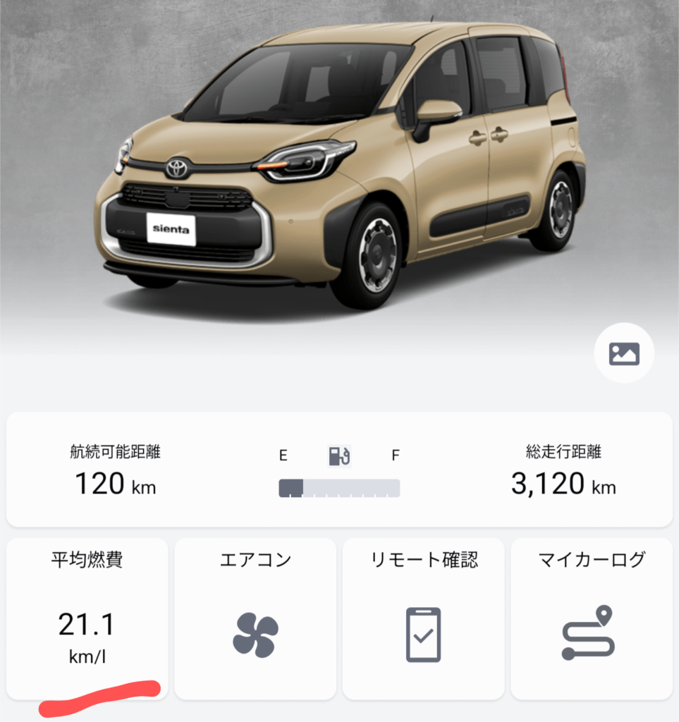 マイトヨタアプリによると、ハイブリッドなのに、燃費は21km/Lとカタログ燃費より結構低い。