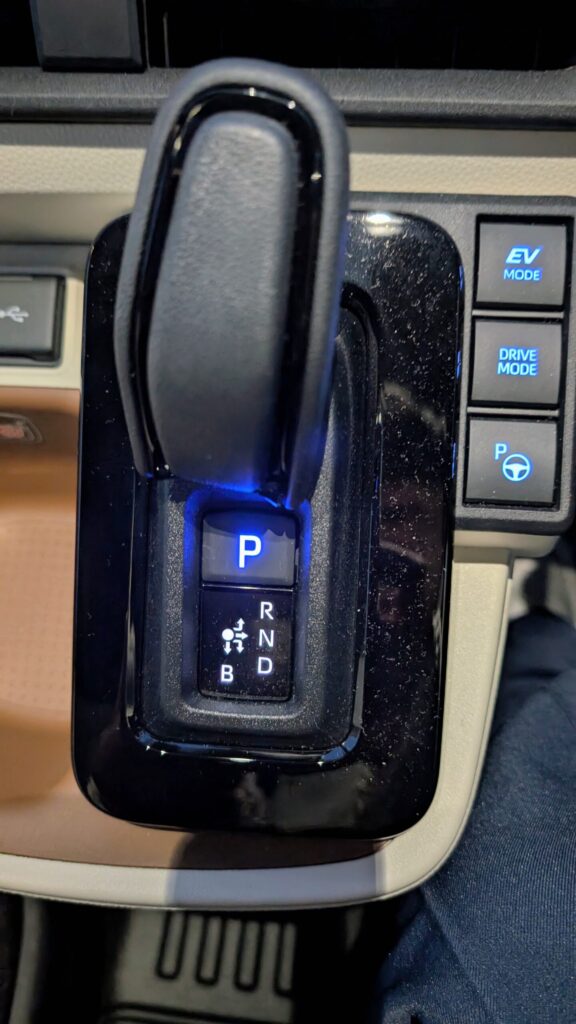 ハイブリッドの Z グレードだと写真のようなプリウスシフトになるんだけど、駐車場の切り返しとかで軽い操作でできるので気に入っている